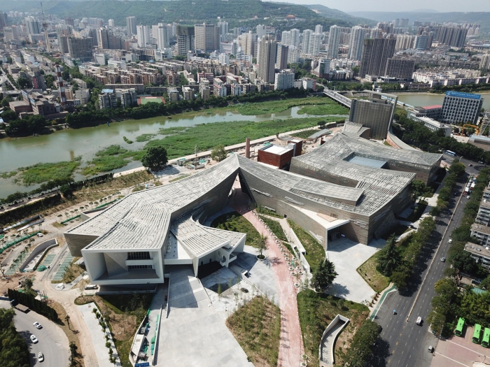 該工程由建筑大師崔愷院士主持設(shè)計(jì),充分考慮舊建筑價(jià)值,保留城市記憶,因地制宜,采用了往返曲折的布局,融合了寶雞周風(fēng)秦韻的文化淵源,形成錯(cuò)落有致、曲折綿延的建筑群落,猶如巨龍般昂首舒尾,欲飛沖天,彰顯出象征寶雞城市飛躍發(fā)展的偉岸形象。其獨(dú)特的現(xiàn)代簡約、環(huán)保、人性化設(shè)計(jì)理念和內(nèi)涵豐富的造型為這座文化藝術(shù)殿堂增加了靈動(dòng)和魅力。